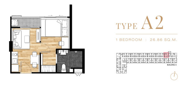 Unit Plan Type A2 แบบ 1 ห้องนอน ขนาด 26.86 ตร.ม.