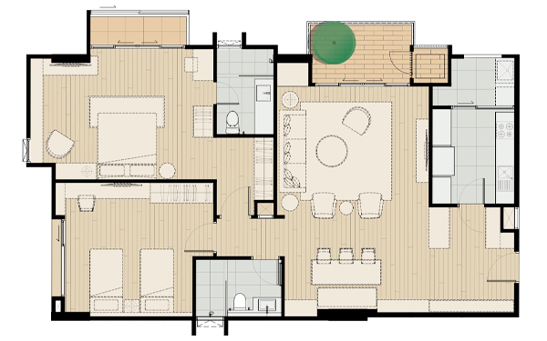 2 ห้องนอน ขนาด 127 ตรม.