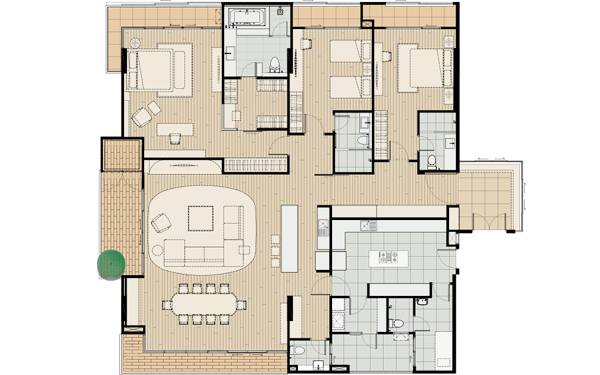 ตัวอย่างผังห้อง 3 ห้องนอน ขนาด 301 ตรม.