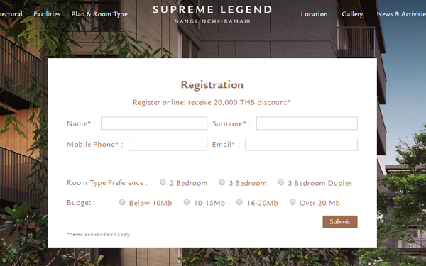 สุพรีม ทีม เปิดตัว "สุพรีม เลเจ้นด์ นางลิ้นจี่-พระราม 3 (Supreme Legend Nanglinchi - Rama 3)" บนพื้นที่ 4 ไร่ 1 งาน 72.7 ต.ร.ว. เอกสิทธิ์ส่วนตัวเพียง 71 ยูนิต พร้อมที่จอดรถประจำทุกยูนิต คิดเป็น 178% หรือ 127 คัน มี Facilities หลากหลาย อาทิ Lobby lounge, สวนพักผ่อน, สระว่ายน้ำ, Jacuzzi, สระว่ายน้ำเด็ก, ฟิตเนส ฯลฯ การเดินทางสะดวกสบายใกล้ถนนพระราม 3, ถนนสาทร, ถนนนราธิวาสฯ รายล้อมด้วยสิ่งอำนวยความสะดวกมากมาย
