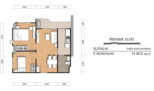 ห้อง 2 Bed Premier Suite ขนาด 52.5 ตร.ม.