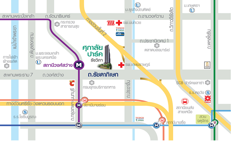 ศุภาลัย ปาร์ค รัชวิภา คอนโดใหม่ใกล้ทางด่วนรัชดาภิเษกและประชาชื่น และรถไฟฟ้าสายสีม่วง สถานีวงศ์สว่าง เป็นคอนโด High Rise 30 ชั้น บนพื้นที่กว่า 9 ไร่ มีสิ่งอำนวยความสะดวกมากมาย ใกล้ห้างสรรพสินค้า แหล่ง Shopping โรงเรียน โรงภาพยนตร์ และมหาวิทยาลัย อาทิ บิ๊กซีวงศ์สว่าง เซ็นทรัล ลาดพร้าว