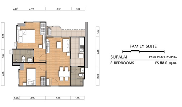 - 2 Bed Family Suite 58, 61 ตร.ม.