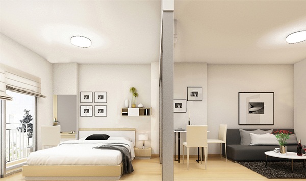 ตัวอย่างภายในห้องนอนและห้องนั่งเล่น