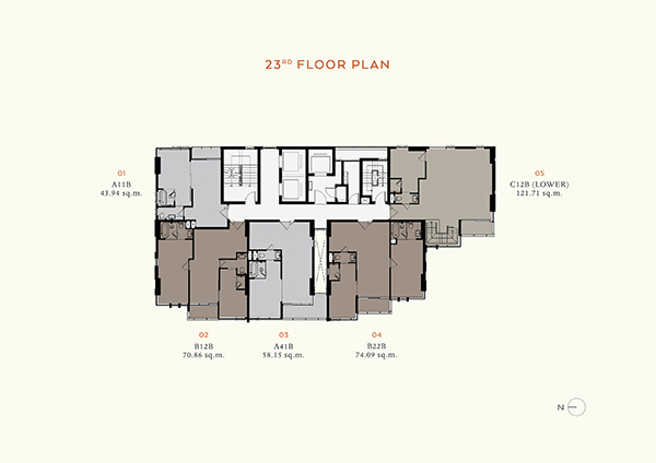 - Penthouse ขนาดพื้นที่ประมาณ 121.71 ตารางเมตร