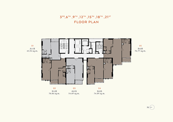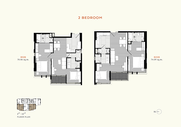 - 2 ห้องนอน ขนาดพื้นที่ประมาณ 70.86- 76.77 ตารางเมตร
