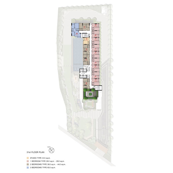 - คอนโดมิเนียมเป็นแบบ High-rise สูง 35 ชั้น จำนวน 1 อาคาร