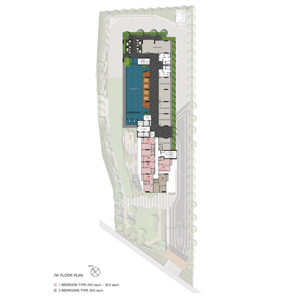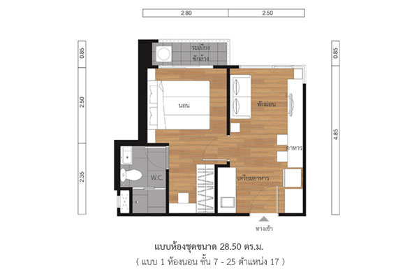 - แบบ 1 Bedroom พื้นที่ใช้สอยขนาด 28.00 ตร.ม.