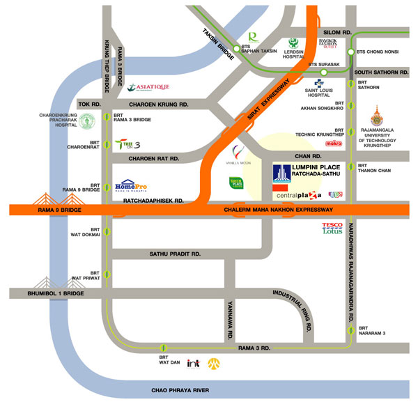 - ใกล้ห้างสรรพสินค้าขนาดใหญ่ ได้แก่ Central พระราม 3, Market Place, เอเชียทีค เดอะริเวอร์ฟร้อนท์