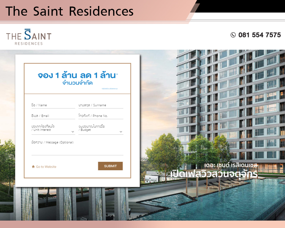 www.thesaint-residences.com ราคาเริ่มต้น : 1.39 ล้าน*