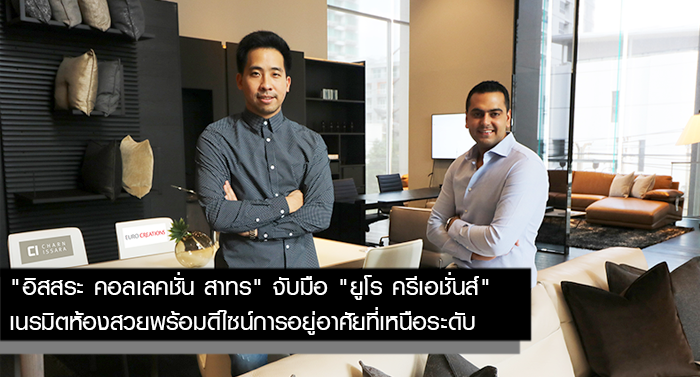 นายดิฐวัฒน์ อิสสระ ผู้ช่วยกรรมการผู้จัดการ สายงานพัฒนาธุรกิจ บริษัท ชาญอิสสระ ดีเวล็อปเมนท์ จำกัด (มหาชน) พร้อมด้วย นายเควิน กัมบีร์ รองประธานบริหาร บริษัทยูโร ครีเอชั่นส์ จำกัด จับมือร่วมโปรเจคโดยนำเฟอร์นิเจอร์แบรนด์ดังระดับโลกสัญชาติยุโรปอย่าง Royal Botanai, Molteni&C, Malerba Collection และ Natuzzi Italia (plaza sofa) เนรมิตห้องสวยให้โครงการ