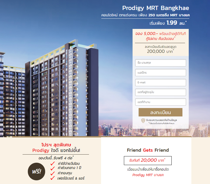 เมื่อแนะนำเพื่อนให้มาซื้อคอนโด รับทันที 20,000 บาท*