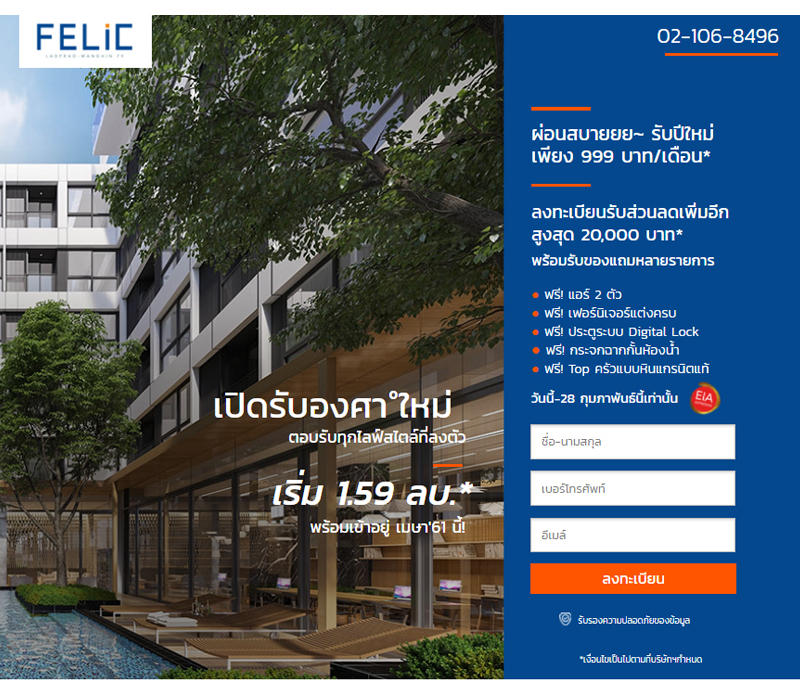 รายละเอียดเพิ่มเติม : https://goo.gl/g2ckzN Felic ลาดพร้าว-วังหิน 79