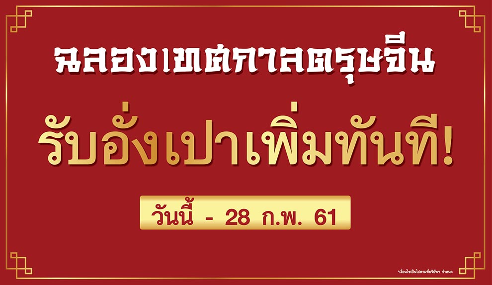 จองวันนี้ - 28 ก.พ. 61 รับอั่งเปาเพิ่มทันที