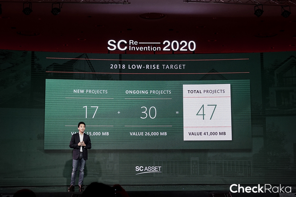 "SC ตั้งเป้าหมายยอดขายและรายได้ปี 2018 ที่ 17,000 ล้านบาท ยอดขายเติบโตประมาณ 11% และ เตรียมเปิด 19 โครงการใหม่ มูลค่า 19,000 ล้านบาท แบ่งเป็นแนวราบ 17 โครงการ มูลค่า 15,000 ล้านบาท และแนวสูง 2 โครงการ มูลค่า 4,000 ล้านบาท พร้อมกับเตรียมงบสำหรับซื้อที่ดินในปีนี้ 10,000 ล้านบาท"