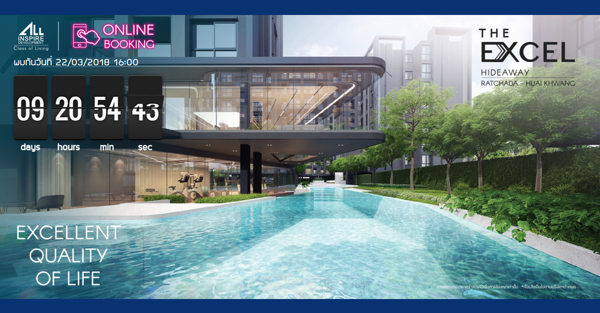 13 มี.ค. 61 6,465ออลล์ อินสไปร์ จัด Event Online Booking คอนโด "The Excel Hideaway รัชดา-ห้วยขวาง" 22 มีนาคม นี้