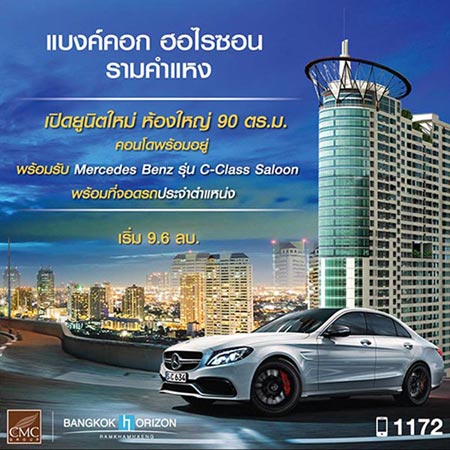 - ซื้อคอนโดแถม Mercedes Benz รุ่น C-Class Saloon สำหรับโครงการ แบงก์คอก ฮอไรซอน รามคำแหง ราคาเริ่ม 9.6 ลบ.