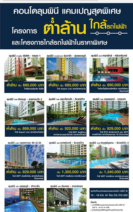 โปรโมชั่นคอนโด "มหกรรมบ้านและคอนโดครั้งที่ 38" วันที่ 15-18 มี.ค. 61 ณ ศูนย์การประชุมแห่งชาติสิริกิติ์