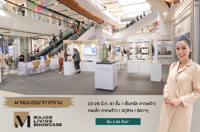วันนี้ CheckRaka.com พาไปชมบรรยากาศงาน "MAJOR LIVING SHOWCASE" ณ เซ็นทรัล ลาดพร้าว ชั้น 1 บริเวณโซน C ที่จัดโดย บริษัท เมเจอร์ ดีเวลลอปเม้นท์ จำกัด (มหาชน) ตั้งแต่วันที่ 22 - 28 มีนาคม 61 โดยทางบริษัทฯ ได้คัดสรรคอนโดมิเนียมคุณภาพระดับ Hi-End เข้าร่วมงานตอบทุกโจทย์ของไลฟ์สไตล์การอยู่อาศัยใจกลางเมือง บน 3 ทำเลศักยภาพ ลาดพร้าว, จตุจักร, รัชดาฯ กับ 5 โครงการคุณภาพ ทุกโครงการสามารถเลี้ยงสัตว์ได้ตามคอนเซปต์ Pet-Friendly