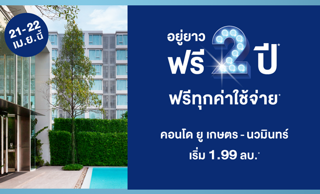 โปรโมชั่น : โปรอยู่ยาวฟรี 2 ปี*!! ฟรี!! ทุกค่าใช้จ่าย*