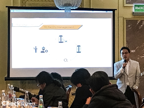คุณวิทการ จันทวิมลกำลังกล่าวถึงว่า AP (Thailand) กำลัง Transform ระบบการออกแบบและบริหารจัดการหลังการขายคอนโดทั้งหมดด้วยการนำระบบ Artificial Intelligence Building Information Modeling (AI BIM) มาใช้