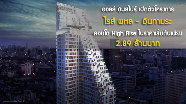 ออลล์ อินสไปร์ เปิดตัวโครงการไรส์ พหล - อินทามระ คอนโด High Rise ในราคาเริ่มต้นเพียง 2.89 ล้านบาท