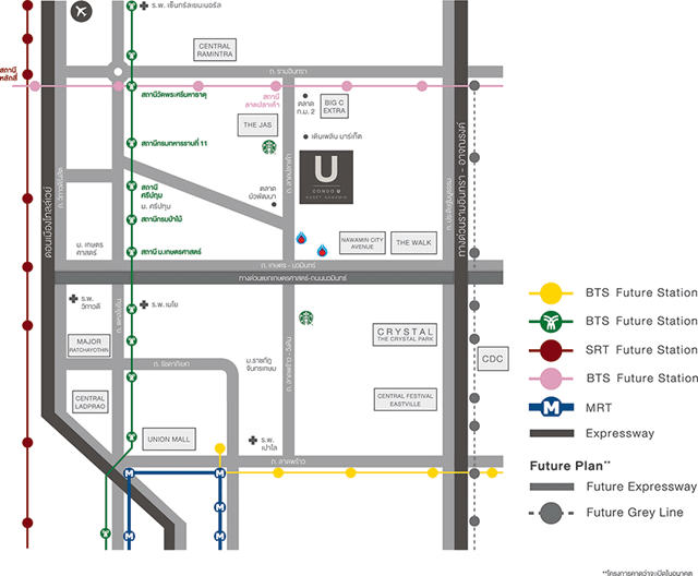 (คลิกดูภาพขนาดใหญ่)แผนที่โครงการคอนโด ยู เกษตร นวมินทร์