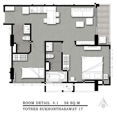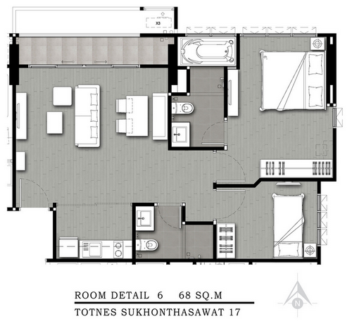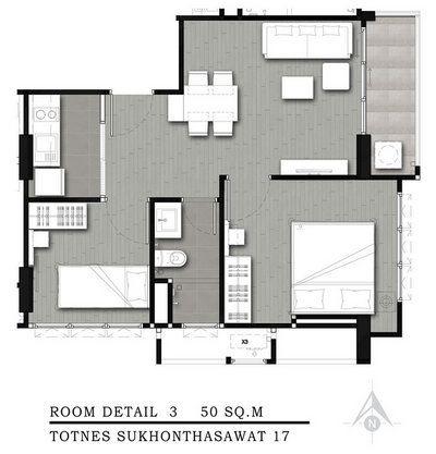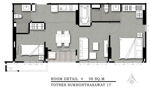 - แบบ 2 Bedrooms ขนาด 50.00 - 68.00 ตร.ม.