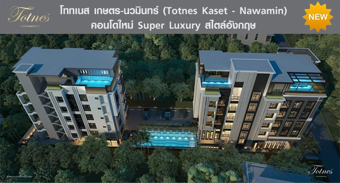 โททเนส เกษตร-นวมินทร์ (Totnes Kaset-Nawamin) คอนโดมิเนียมหรูโครงการใหม่ใจกลางถนนเกษตร-นวมินทร์ เป็นโครงการ Low-Rise 7 ชั้นระดับ Super Luxury ผสมผสานสถาปัตยกรรมสไตล์อังกฤษ มีเอกลักษณ์ที่แตกต่าง ภายใต้ความเรียบหรู สง่างาม เน้นความเป็นส่วนตัว "The Exclusive Unique" ที่มีสุนทรียภาพเหนือระดับในสังคมคุณภาพเพียง 54 ยูนิตเท่านั้น มาพร้อมสระว่ายน้ำส่วนตัว และระบบรักษาความปลอดภัยที่ครบครันระดับพรีเมียม
