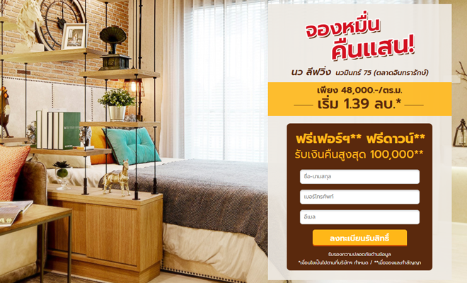 โปรโมชั่น : จองหมื่น คืนแสน! นว ลีฟวิ่ง นวมินทร์ 75 ห้องใหม่ ใหญกว่า!