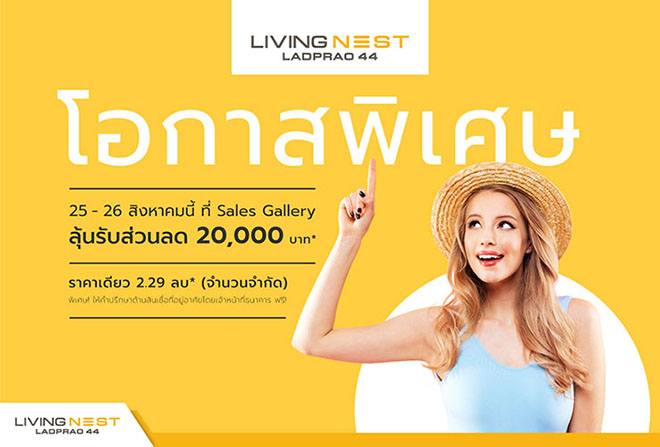 โอกาสพิเศษ Living Nest Special Day 25 - 26 ส.ค.นี้ ที่ Sales Gallery - ลุ้น! Lucky Draw ส่วนลดพิเศษ 20,000 บาท*