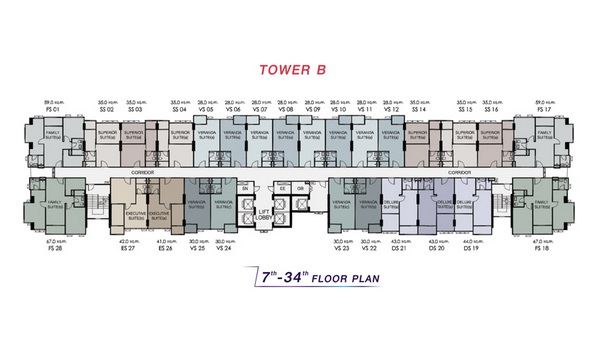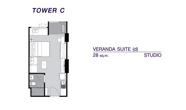 ห้องพักอาศัยเป็น มี 3 แบบ ได้แก่ - แบบ Studio พื้นที่ใช้สอยขนาด 28 - 30 ตร.ม.