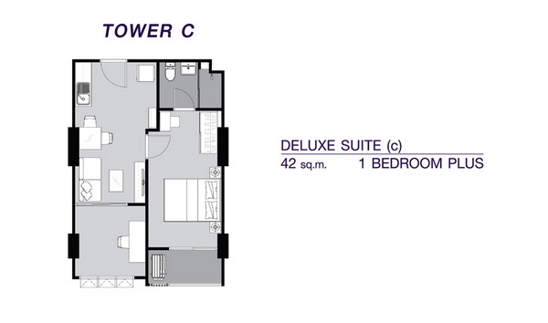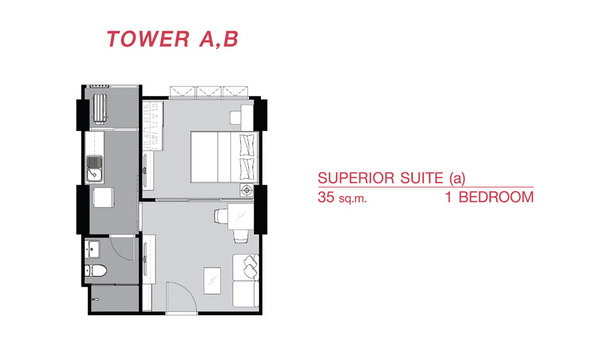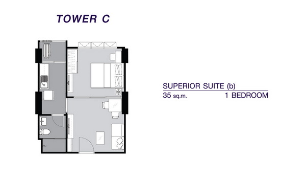 - แบบ 1 Bedroom พื้นที่ใช้สอยขนาด 33 - 44 ตร.ม.
