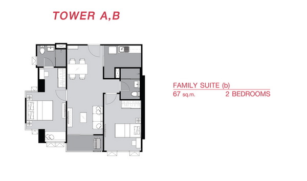 - แบบ 2 Bedroom พื้นที่ใช้สอยขนาด 59 - 67 ตร.ม.