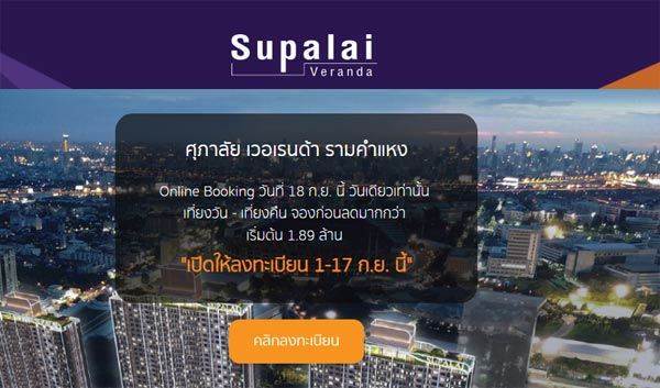 โครงการ ศุภาลัย เวอเรนด้า รามคำแหง เตรียมเปิด Presales 28 - 30 กันยายน นี้ ณ สำนักงานขายโครงการ และเตรียมพบกับ Supalai online booking ครั้งแรก 18 กันยายนนี้ จองก่อนลดมากกว่า