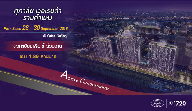 ศุภาลัย เวอเรนด้า รามคำแหง จัดงาน Pre-Sale 28-30 ก.ย.นี้ ร่วมสัมผัส ACTIVE CONDOMINIUM แห่งแรก
