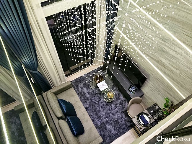 มุมสวยๆ ของห้อง Duplex มองจากห้องนอนลงมายังห้องรับแขก