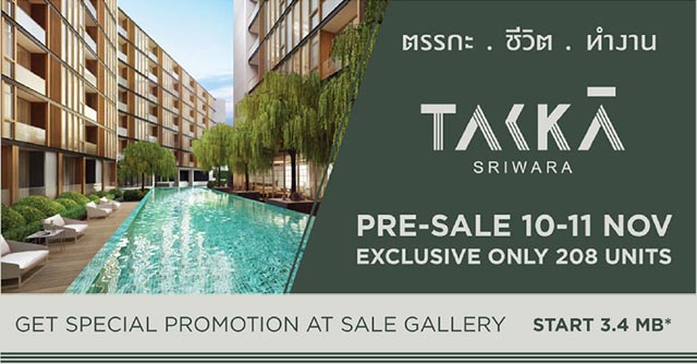 24 ต.ค. 61 1,226พันนาลิฟวิ่ง เปิดตัวคอนโดใหม่ "ตรรกะ ศรีวรา (Takka Sriwara)" Pre - Sale 10 - 11 พ.ย. นี้