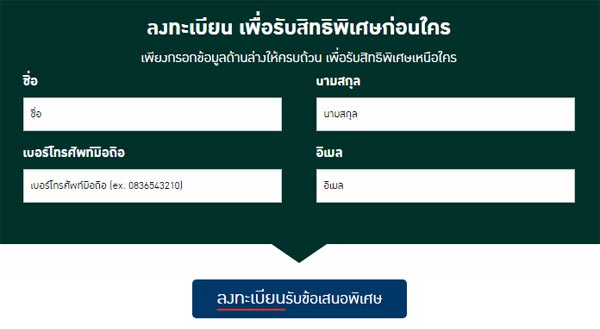 ลงทะเบียนรับสิทธิ์จองก่อนใคร พิเศษ! ลดเพิ่ม 10,000 บาท เมื่อจองภายในงานสอบถามรายละเอียดเพิ่มเติม โทร. 1375 หรือ www.pf.co.thข่าว-โปรโมชั่นล่าสุดอื่นๆ
