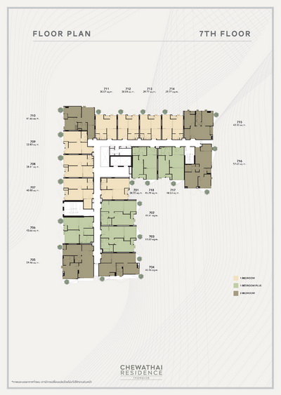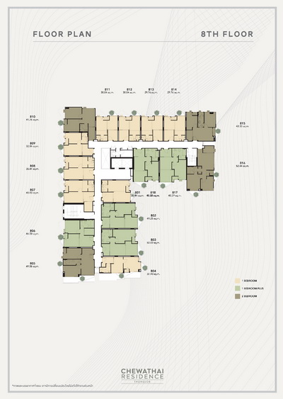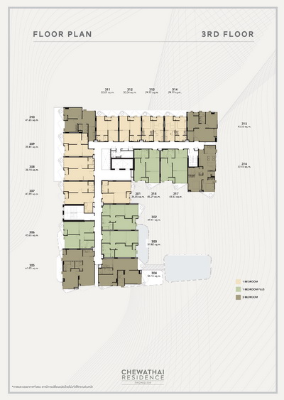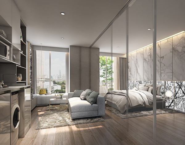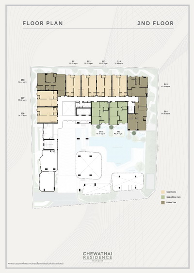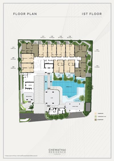 ห้องพักอาศัยเป็น มี 3 แบบ ได้แก่ - แบบ 1 Bedroom พื้นที่ใช้สอยขนาด 29.76 - 40.88 ตร.ม.