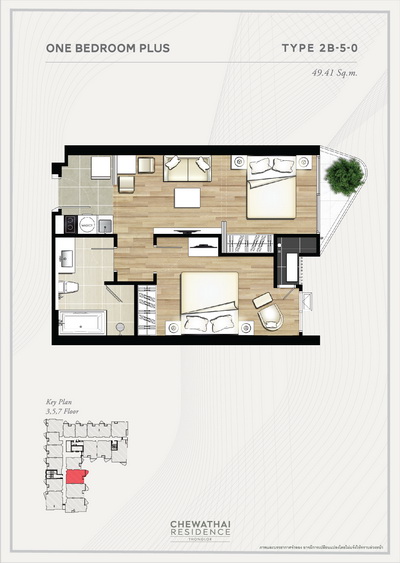 - แบบ 1 Bedroom Plus พื้นที่ใช้สอยขนาด 41.46 - 52.02 ตร.ม.