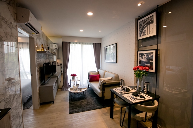 - แบบสตูดิโอ (Studio) ขนาดพื้นที่ 24.6 ตารางเมตร ราคาเริ่มต้น 1.69 ล้านบาท