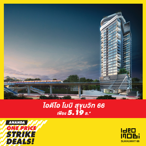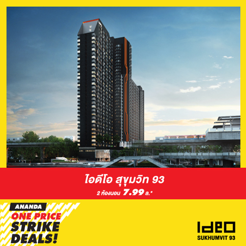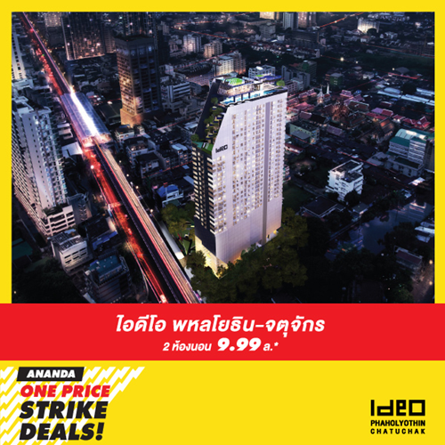 บริษัท อนันดา ดีเวลลอปเม้นท์ จำกัด (มหาชน) อนันดาจัดโปรฯ "Ananda ONE PRICE STRIKE DEALS" อย่ารอช้า!! โปรฯสุดคุ้มกับ 10 คอนโดพร้อมอยู่ใกล้รถไฟฟ้า ราคาเดียว! ผ่อน 999 บ./ด. ทุกยูนิต นาน 2 ปี! ราคาดีสุด คุ้มสุด สะดวกสุดด้วย!! เริ่มต้น 2.29 ล้านบาทเอง แถมฟรีค่าใช้จ่ายวันโอน เหมาะกับวิถีมนุษย์คนเมืองมากที่สุด วันที่ 27 - 28 ต.ค.นี้ เท่านั้น ที่สำนักงานขายโครงการ