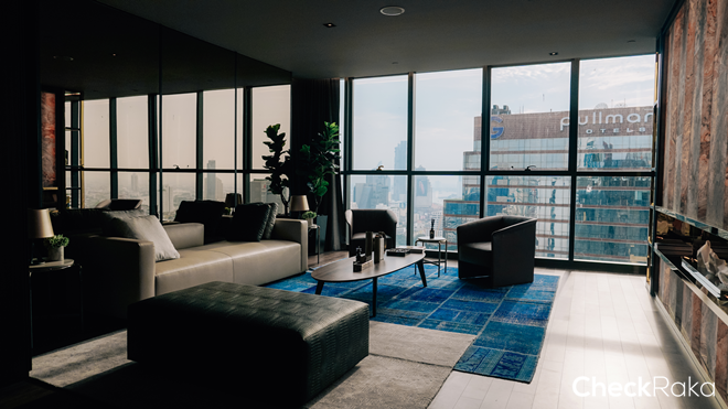 ชั้น 46 และ ชั้น 48 The Sky Saloon เอื้อมแตะขอบฟ้าบนชั้นสูงสุด มองเห็นวิวเมืองพาโนราม่าไร้บรรยากาศตึกอื่นกั้นสายตา ได้แก่ Social Sky bar, Botanic Lounge, Secret Garden, Barbeques Lawn, River Deck, City Deck