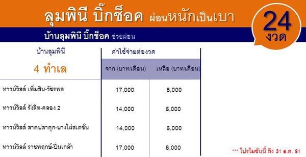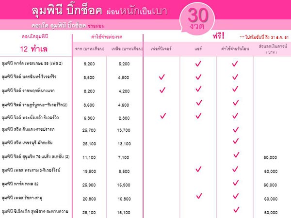 "ลุมพินี บิ๊กช็อค ผ่อนหนักเป็นเบา" ช่วยผ่อนแบงค์ 4,000 บาท สูงสุด 30 งวด ราคาเริ่มต้น 1.03 ล้านบาท