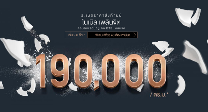"ระเบิดราคาส่งท้ายปี" คอนโดพร้อมอยู่ "Noble Ploenchit" เริ่ม 190,000 บ./ตร.ม.* 40 ยูนิตเท่านั้น!