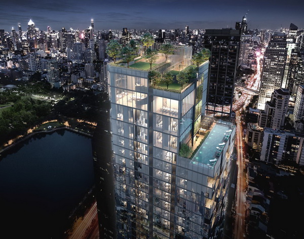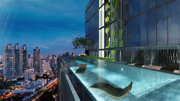 ภาพจำลองบรรยากาศภายนอกอาคาร มองเห็น Sky Bar, Sky Lounge, Sky Jogging และ Sky Garden