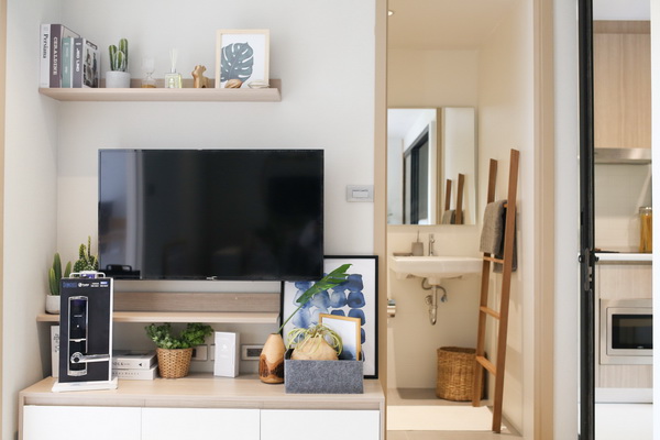 ห้องแบบ 1 ห้องนอน (CO-MFORT) ขนาด 30 ตร.ม. อีกหนึ่งพื้นที่ที่พร้อมตอบโจทย์ความสบายทุกรูปแบบของคนเมือง ที่ต้องพบกับความเครียดหรือแรงกดดันจากสิ่งรอบข้าง อะไรจะดีกว่าการกลับมาห้องที่เราสามารถเอนตัวลงนอนได้อย่างไร้กังวล พร้อมชาร์จพลังให้สุดกับผู้อยู่อาศัยสำหรับวันพรุ่งนี้ที่สมบูรณ์แบบ