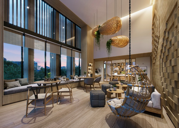 3.ซัพพอร์ตสมดุลแห่งธรรมชาติ ทุกรายละเอียดการดีไซน์ทั้งในและนอกของโครงการ ได้รับแรงบันดาลใจจากคอนเซ็ปต์ "Simple Sensibility" หรือความเป็นอยู่อย่างเรียบง่าย ที่อยากจะให้พื้นที่นี้เป็นเหมือนพื้นที่พักผ่อน ร่มรื่น รองรับการใช้ชีวิตของคนเมือง งานด้านสถาปัตยกรรมทั้งหมดจึงให้ความสำคัญ ความสะดวกสบายของผู้อาศัยอย่างแท้จริง ด้วยความรู้สึกอบอุ่นจากวัสดุธรรมชาติผสานกับความทันสมัย ตั้งแต่งานเฟอร์นิเจอร์ไม้แท้ พื้นหิน และ "โคมไฟหวายรูปทรงรังไหม" ที่มีแรงบันดาลใจมาจาก "รังไหม" เพื่อมาเป็นซิกเนเจอร์ของโครงการ รวมถึงการออกแบบองค์ประกอบต่างๆ ทั้งหน้าต่าง ประตู และดีไซน์ ภายนอกอาคาร ที่ถูกดีไซน์มาเพื่อรับแสงธรรมชาติให้ได้มากที่สุด บนคอนเซ็ปต์ "ชีวิตเรียบง่าย ทว่ายังคงความสมดุล"