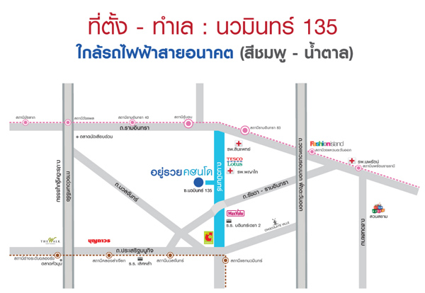 "อยู่รวยคอนโด" ตั้งอยู่บนถนนนวมินทร์ ซอย 135 พื้นที่โครงการประมาณ 12 ไร่ เป็นอาคารชุดสูง 8 ชั้น จำนวน 10 อาคาร รวม 2,461 หน่วย โดยบริษัทได้พัฒนาเป็นห้องชุดพิเศษขนาด 22 ตร.ม. พร้อมเฟอร์นิเจอร์ เปิดขายทุกชั้นในราคาเดียว 899,000 บาท